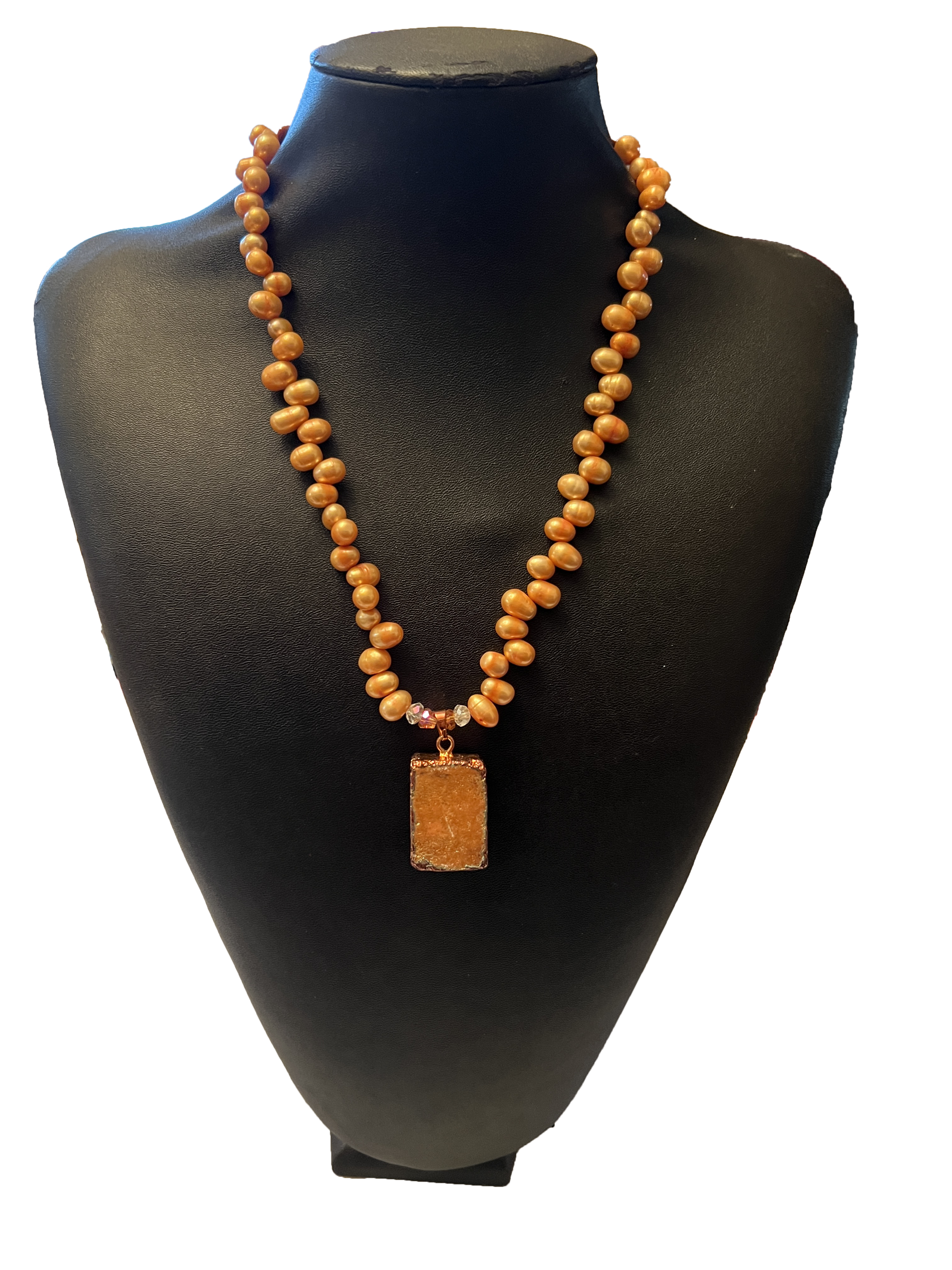 Experience the natural beauty of Orange Quartz with our Orange Potato Pearl and Mother of Pearl Necklace. The combination of these vibrant pearls and the iridescent mother of pearl creates a stunning and unique piece for any outfit. Stand out with the warm and eye-catching tones of Orange Quartz.
